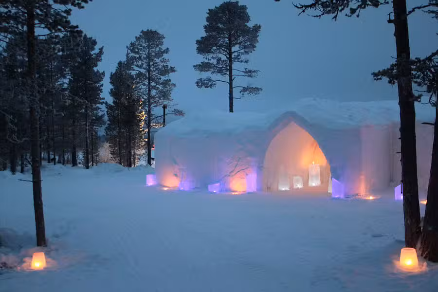 Prepare for an unforgettable adventure as you embark on the ride of a lifetime travelling by a snowmobile drawn sleigh from Enontekio Airport to the magical setting for your Lapland day trip. Set in the glorious Lappish countryside, immerse yourself in this winter wonderland and enjoy a variety of traditional Arctic activities at your leisure. Discover the unique beauty of the snow igloo and marvel at the ice sculptures and cosy interior. Enjoy husky and reindeer sleigh rides, tobogganing and a mini-drive of a snowmobile throughout the day on this highly rated trip. Journey by sleigh to Santa's secret hideaway and enjoy a private family meeting with the big man himself. Children can share their Christmas wishes, receive a small gift, and take a photo with Santa to capture this precious moment.