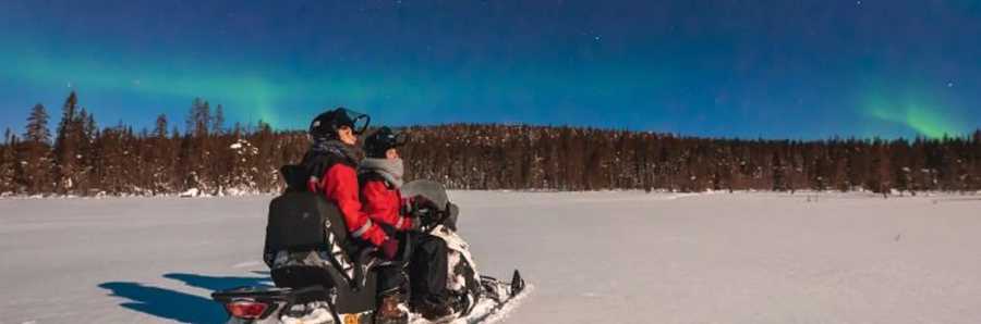 This is a must-do experience while in Lapland. Let the huskies take you through snow-capped forests and over frozen lakes. Two adults share a sled and a dog team - Northern Lights Snowmobile Safari (Duration: 2 hours)