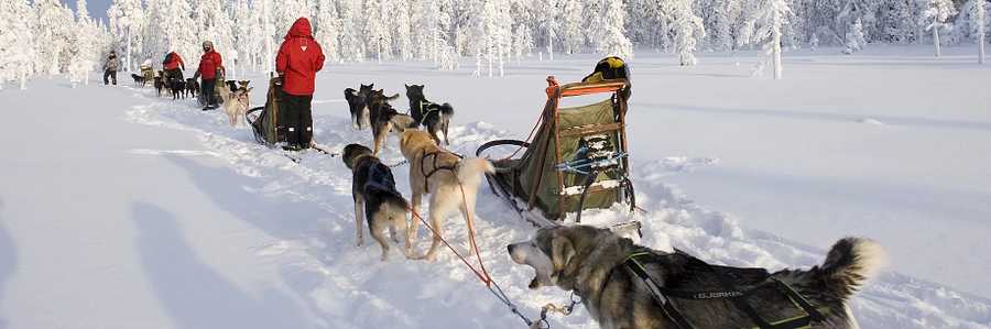 This is a must-do experience while in Lapland. Let the huskies take you through snow-capped forests and over frozen lakes. Two adults share a sled and a dog team - Reindeer Camp (Duration: 2 hours)