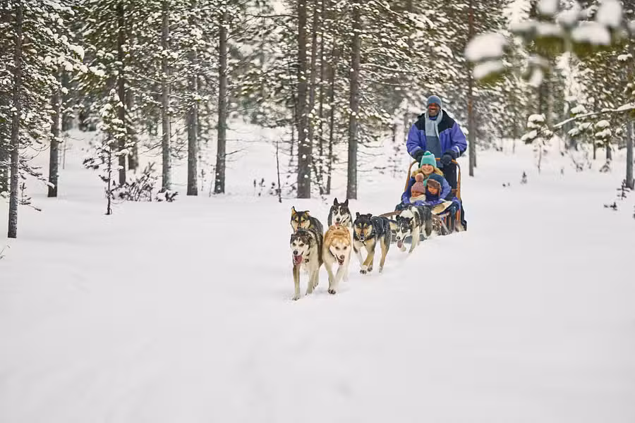 During your Santa’s Magic three-night trip you’ll be surrounded by a stunning snowy landscape, enchanting forests and entertained by our fun-loving elves as you experience a festive adventure like no other. You’ll be based in enchanting Saariselkä - in the far north of Finnish Lapland. Your time in this winter wonderland will be filled with fun and exciting activities among this snow-draped landscape. Having an extra day on this holiday allows you more time to explore this enchanting area. In Saariselkä you’ll find a selection of cafes, bars and gift shops. Why not treat yourself to a gift from Lapland or take home a present for a loved one? On day three, from your accommodation you travel a short journey to experience husky sledding and a reindeer sleigh ride. These excursions will leave you laughing and smiling as you get up close and personal with Lapland’s most iconic animals. The fun in the snow continues with activities such as a visit to a magical igloo where our special elves will be ready to put on a show for you and your family. Of course, all of this is building up to the number one moment of your adventure – it's time to venture through the forest by snowmobile to find Santa’s secret log cabin. Here you will spend time with the man himself, Santa Claus, who will have a special gift for all children. A delicious festive dinner rounds off your day as you look back on a festive experience like no other in Lapland.