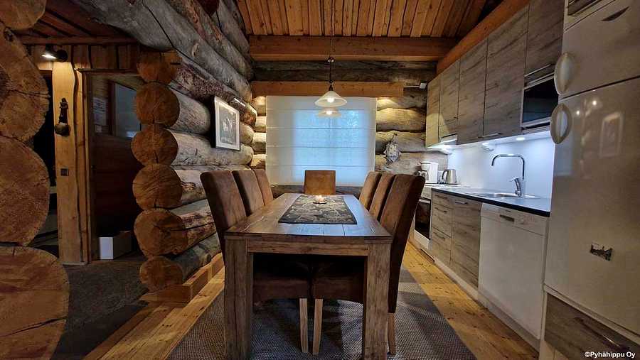 Your cosy Pyhä log cabin includes a shower room with Finnish sauna, a fully equipped kitchenette, TV, drying cupboard and a sitting area with log fire. A perfect spot to relax in the evening after the festivities of the day.