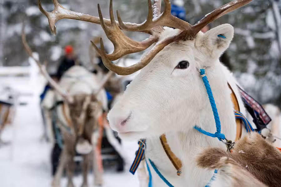 From Rovaniemi Airport it is just a short transfer to the city centre where you will find an abundance of hotels, shops, café bars and restaurants. Santa Claus Village, which is located a short drive north of the city, is bursting with festive sparkle as guests arrive to visit Santa Claus, send mail to loved ones from the official Santa Claus Post Office and to enjoy the magical lights that decorate every inch of the village. A special string of bright blue lights stretching across the village mark the exact position of the Arctic Circle.