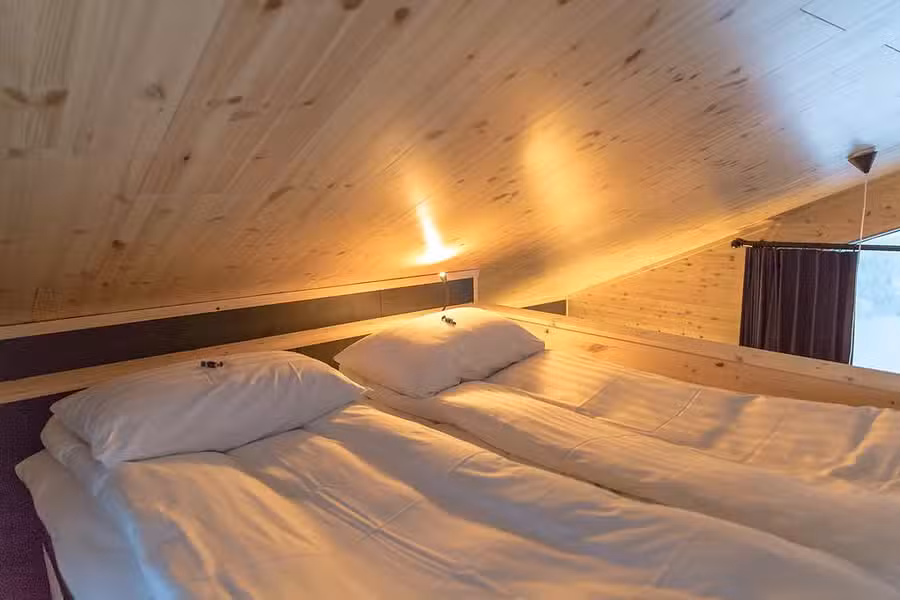 Rest up on a twin or double bed on the upper floor with windows facing north for the Northern Lights. Theres a sofa-bed for up to 2 children on the lower floor, where the window looks out over the arctic landscape.