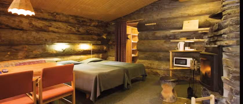The Äkäs Cabins are on a bed and breakfast basis with the option to upgrade to have half-board meals in the nearby Äkäs Hotel. Half board includes a buffet breakfast and a three-course dinner.